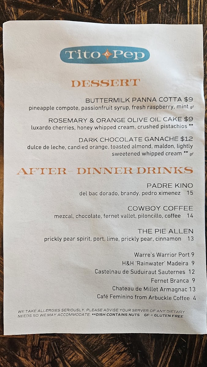 Tito and Pep Menu